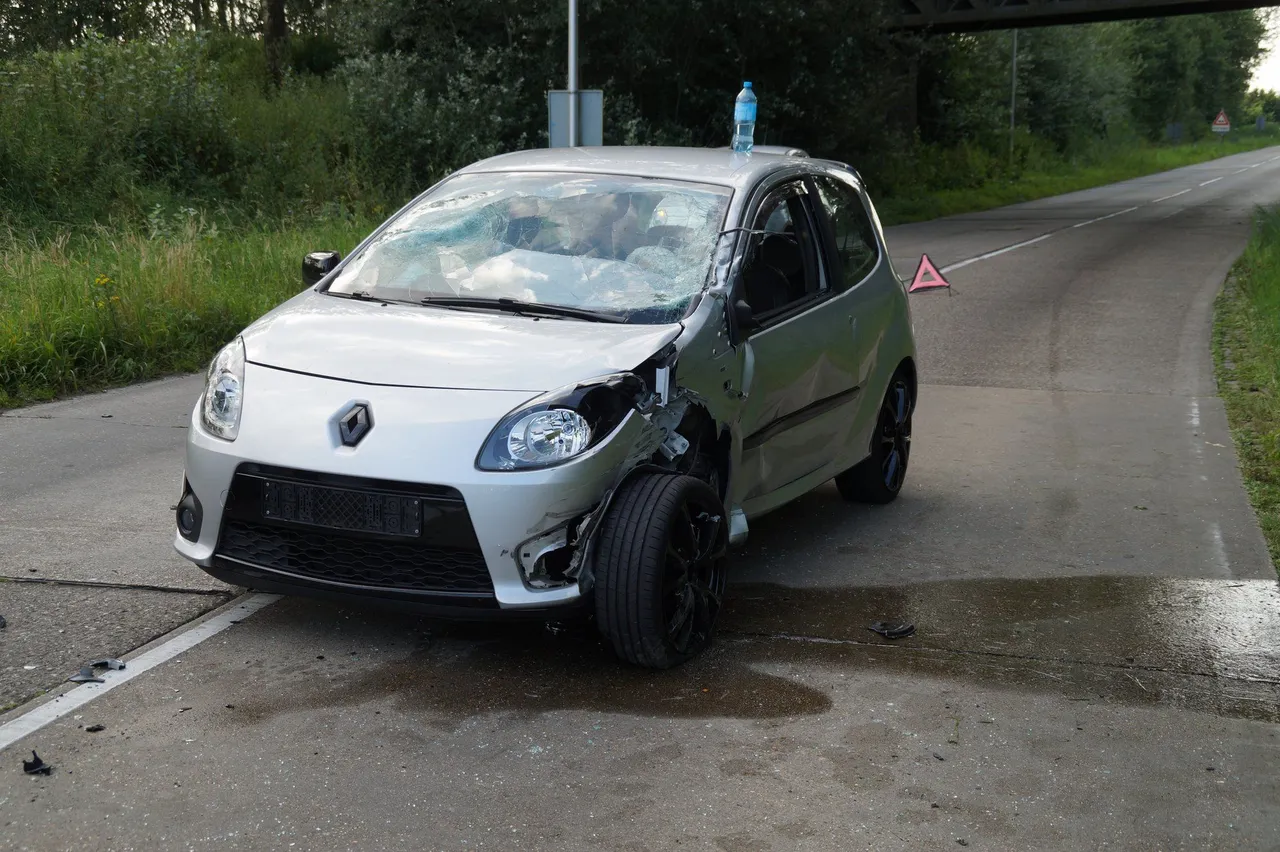 De auto raakte zwaar beschadigd: de voorruit was helemaal gebarsten en de zijkant lag in de kreukels. De op- en afrit was even afgesloten, maar inmiddels is die weer open. De politie doet onderzoek naar hoe het ongeluk precies heeft kunnen gebeuren.