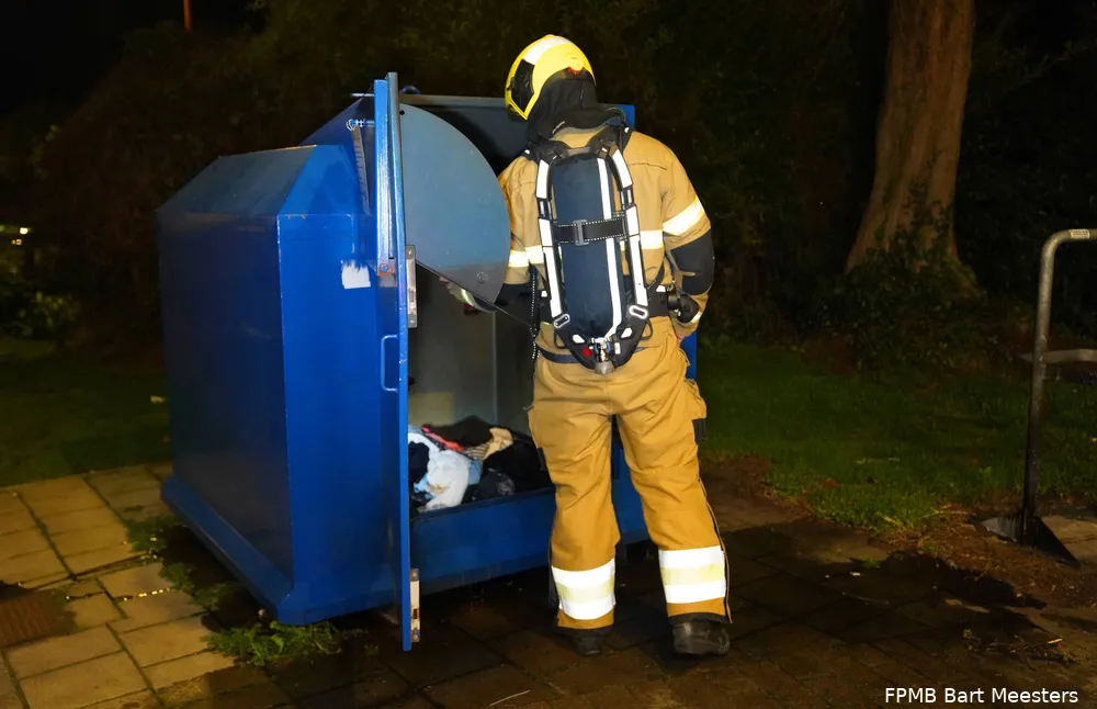 De brandweer van Vlijmen is donderdagavond twee keer uitgerukt voor branden bij het Van Greunsvenpark in Vlijmen. Opnieuw stonden er twee kledingcontainers in brand in de buurt van het park. Eerder deze week stond er ook al een kledingcontainer in brand.