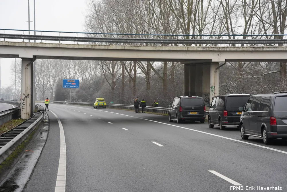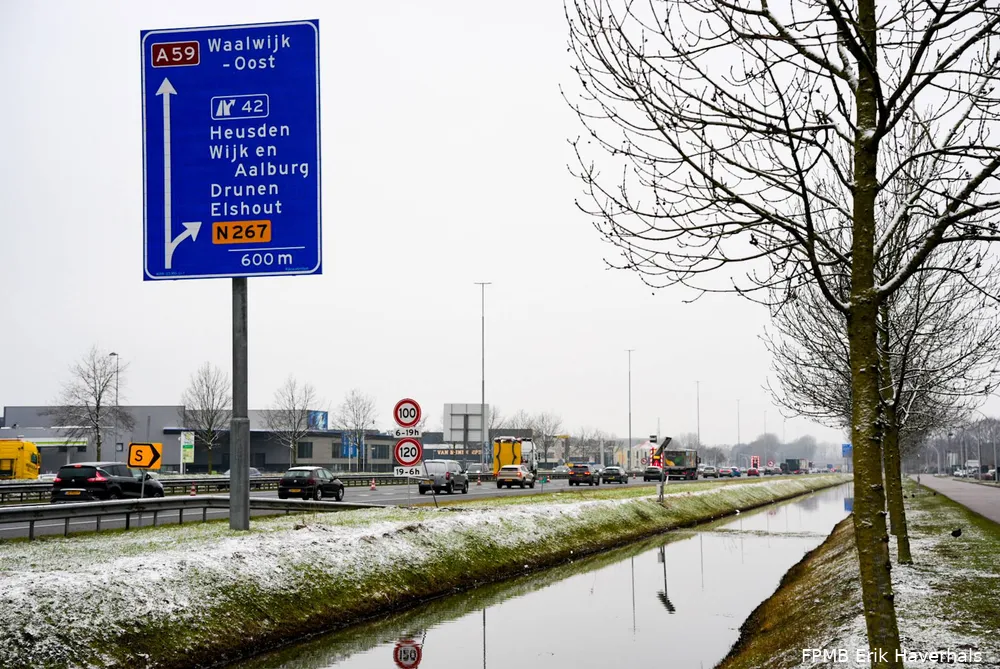 Vanwege een politieonderzoek is de A59 van Den Bosch richting Hooipolder afgesloten. De politie doet bij Nieuwkuijk onderzoek naar een schietpartij die vorige week op de snelweg plaatsvond. Er werd ook een speurhond ingezet om sporen te zoeken.