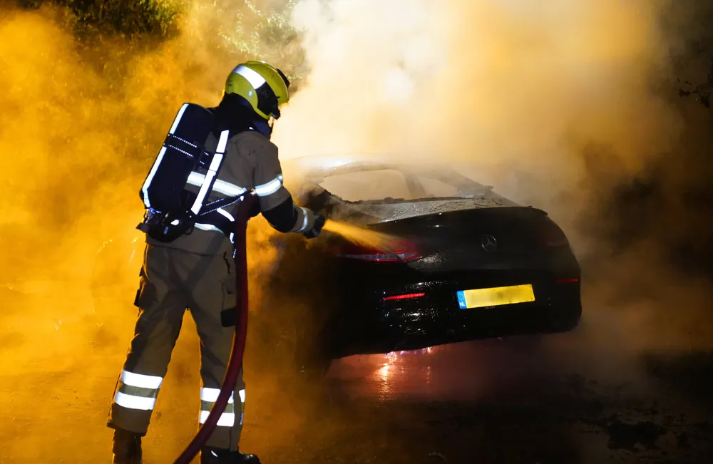 De bestuurder zette de auto nadat er veel rook onder de motorkap vandaan kwam vlug langs de kant van de weg en stapte uit. Dat bleek een goede keuze, want de Mercedes vloog al snel na het parkeren in brand. De brandweer kwam met ter plaatse terwijl de politie de weg afzette zodat de brandende auto veilig kon worden geblust.