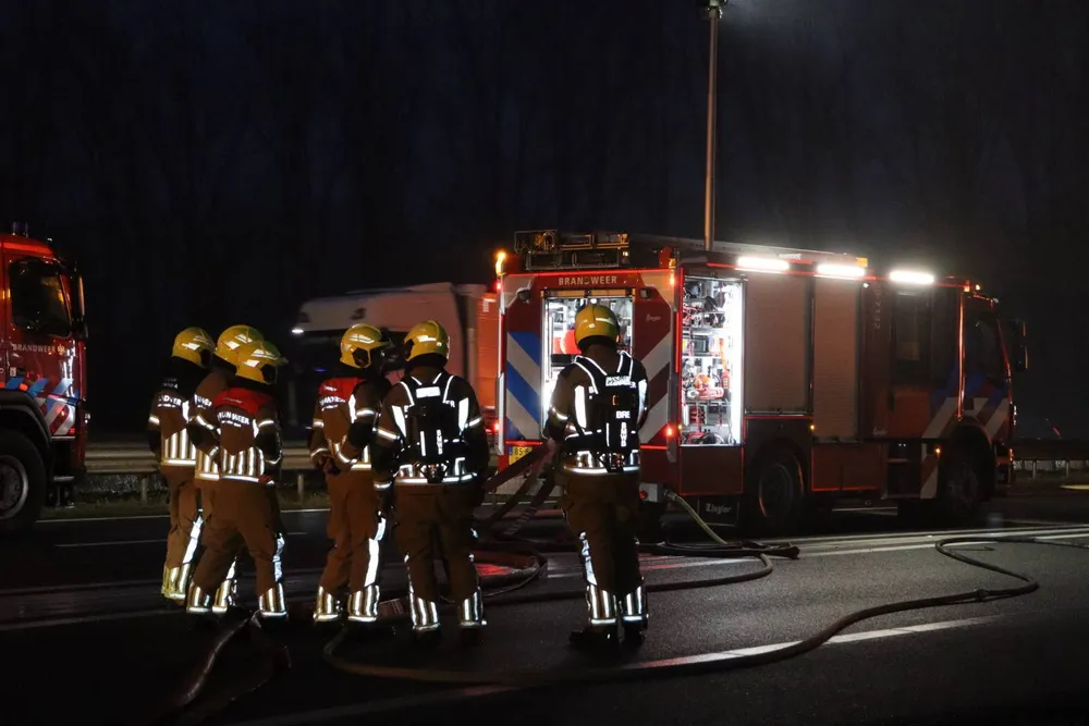 Meerdere hulpdiensten kwamen ter plaatse, meldt Rijkswaterstaat. De bestuurder van de vrachtwagen wist de brandende aanhanger op tijd los te koppelen en de trekker naar voren te rijden. Daardoor werd verdere schade aan de vrachtwagen voorkomen.