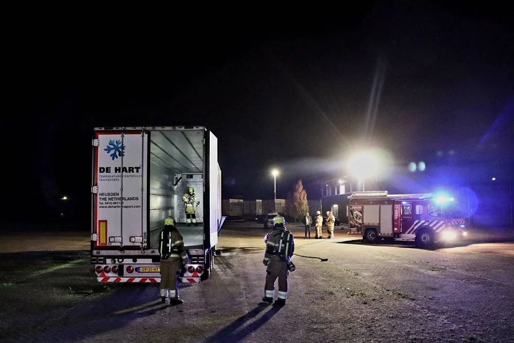 Een geparkeerde vrachtwagen op het terrein van transportbedrijf De Hart aan de Industrieweg in Heesbeen heeft vrijdagnacht vlam gevat.