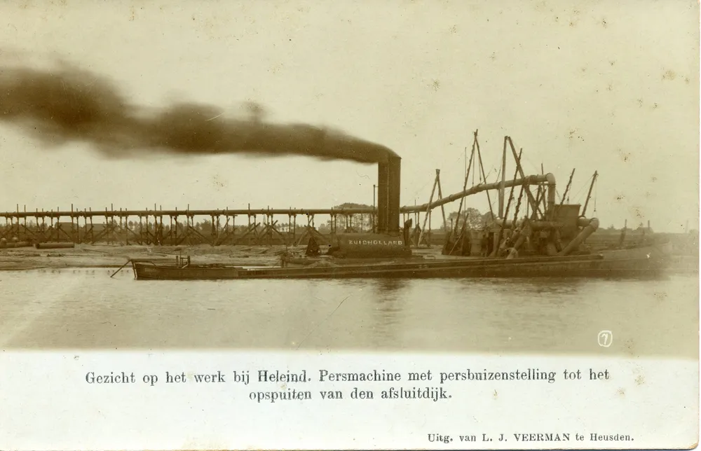 afsluitende dijken bij Heleind-Hedikhuizen en Heesbeen. Het stoomgemaal in de