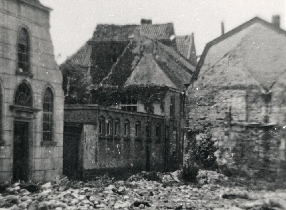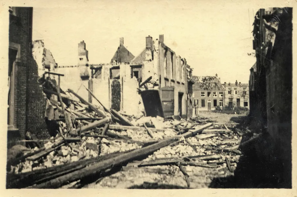 op één van de verwoestingen. De foto is genomen vanuit de Wijksestraat