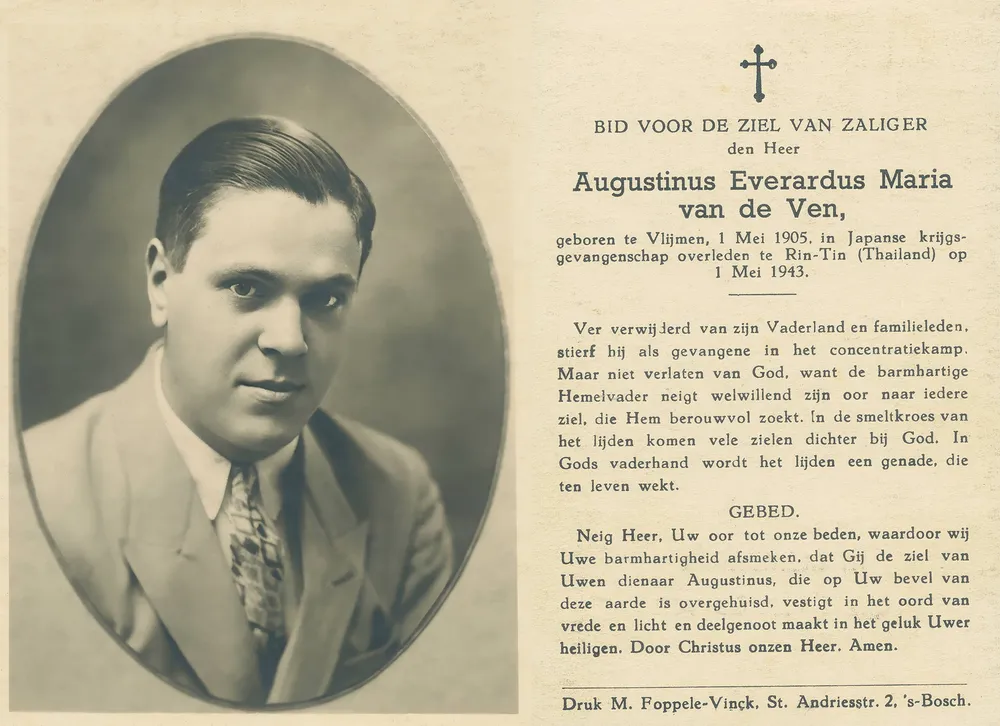 Een nieuwe Aflevering van Historisch Heusden geschreven door Bart Beaard en deze keer gaat het in deel 235 van Historisch Heusden over 'Guus van de Ven overlijdt op 1 mei 1943 aan de Birmaspoorweg in Thailand'. Guus van de Ven wordt in Vlijmen geboren op 1 mei 1905 als zoon van koekbakker Harrie van de Ven (1870-1966) en winkelierster Cato van Susante (1877-1959). Op 15 augustus 1925 vertrekt hij aan boord van s.s. Vondel van de Nederlandse Stoomvaart-Maatschappij naar Nederlands-Indië.