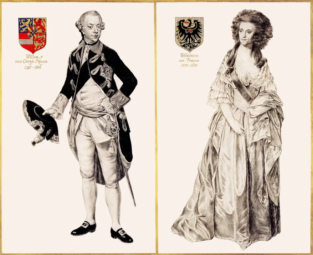 Foto Midden: Stadhouder Willem V van Oranje-Nassau (1748-1806) met zijn gemalin prinses