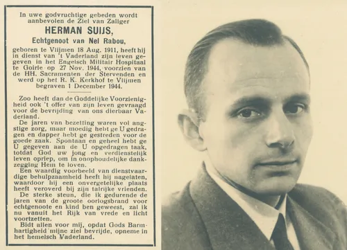 Gedachtenisprentje van Herman Suijs. Hij overleed