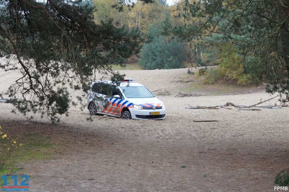 In de Loonse en Drunense Duinen is vrijdagochtend een mountainbiker hard ten val gekomen. Toen de hulpdiensten ter plaatse wilden komen reed een politieauto zichzelf vast in het zand.