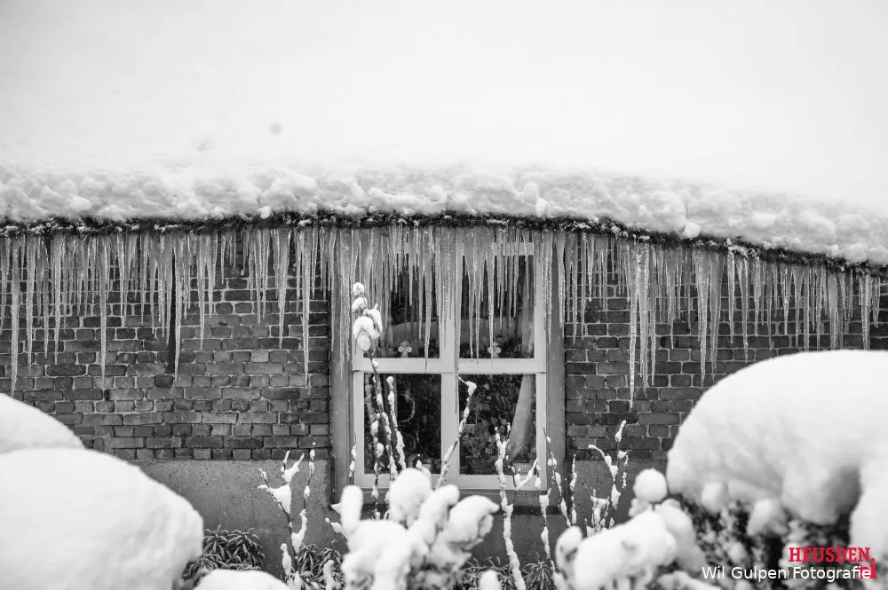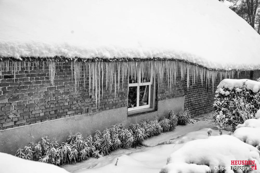 Ik hèùrde dè-t-er daoken zen ingestort van al dieje snîw, mer mèèn bóéderijke stàò-t-er al van 1650 aaf aon, ’t zal al wel óòt idder zovéúl gesnîwd hebben, docht ik. ’t Énegste linke-n-hier is ’n daklawine ès de snîw zó in éne keer van’t dak afschúíft. Omdè mèènen *àòngaank mer ‘ne méter bréèd is, kande dan gin kaant op en hedde kaans dè ge al dieje snîw in ‘ewe nek krèt. Mer ge heur ’t aalt rommelen ès ’t zó wèèd is. Om dàòrom lùìster ik dus irst aalt hil góéd of ik wel vèèleg óver m’nen àòngaank nàòr m’n aachterdeur kan gaon. Mer ’t is nou gedaon mi de vorst dus gullie kant wir vèèleg bè-j-óóns Marie terèèchte. Hier nog ’n wèènterkaauwlieke:
