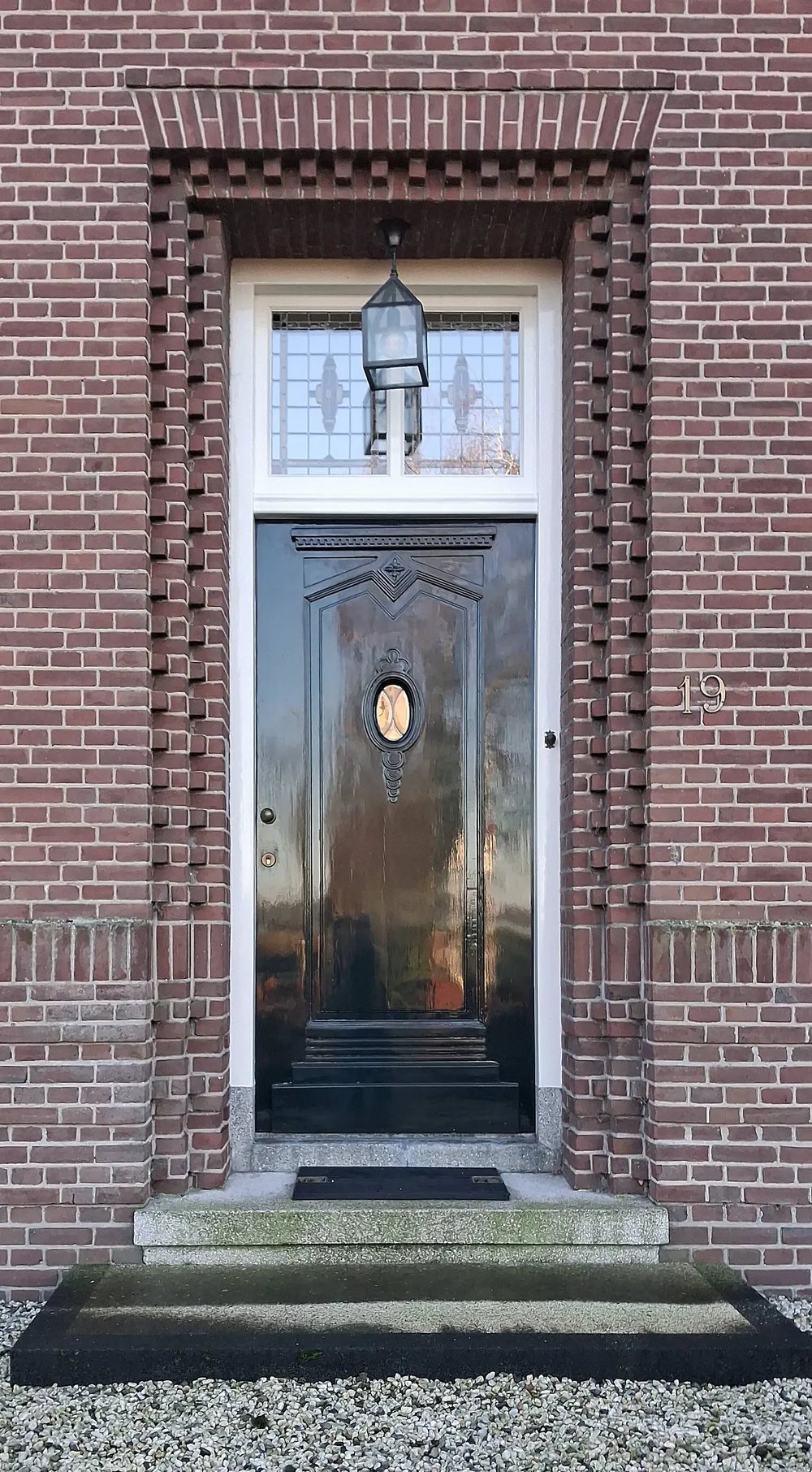 bevindt zich in een 60 cm diepe en getrapte nis met bloklijst. De stoep is