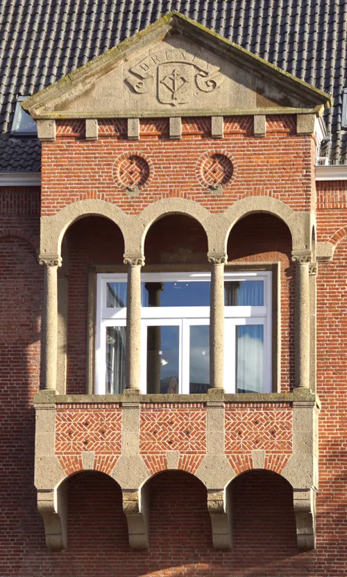 gemeentehuis werd tussen een rondboogfries een loggia aangebracht. De toegang