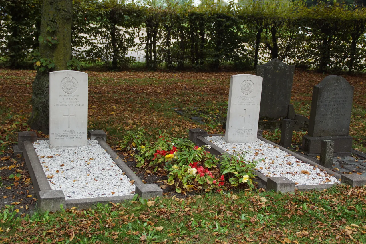 NH-begraafplaats Oudheusden, de grafmonumenten van George Howard en Alan Eames. Foto Ad Pellemans