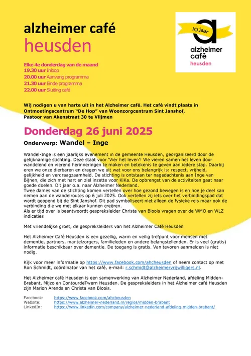 Twee dames van de stichting komen vertellen over hoe gezond bewegen is en hoe je deel kan nemen aan de wandelroutes op 6 juli 2025. Ook vertellen zij iets over het verbindingspad dat wordt geopend bij de Sint Janshof. Dit pad symboliseert niet alleen de fysieke reis maar ook de verbinding die we met elkaar kunnen creëren.