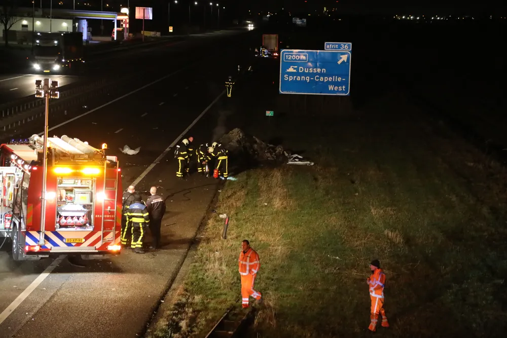 Op de A59 ter hoogte van Sprang-Capelle is in de nacht van donderdag op vrijdag rond 0.15 uur een auto achterop een vrachtwagen gereden. De auto is daarbij in brand gevlogen de bestuurder is hierbij om het leven gekomen. Het ongeluk had plaats op de weghelft richting Hooipolder tussen Waalwijk en Waspik.