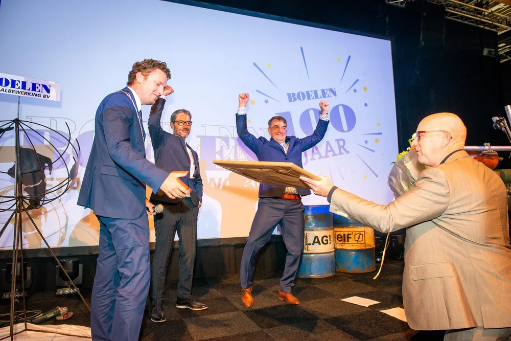 Afgelopen vrijdag was het feest bij Boelen Metaalbewerking BV in verband met het 100 jarig bestaan. Daarnaast mogen ze sinds deze dag van het jubileum ook nog eens het predicaat 'Koninklijk Hofleverancier' voeren.