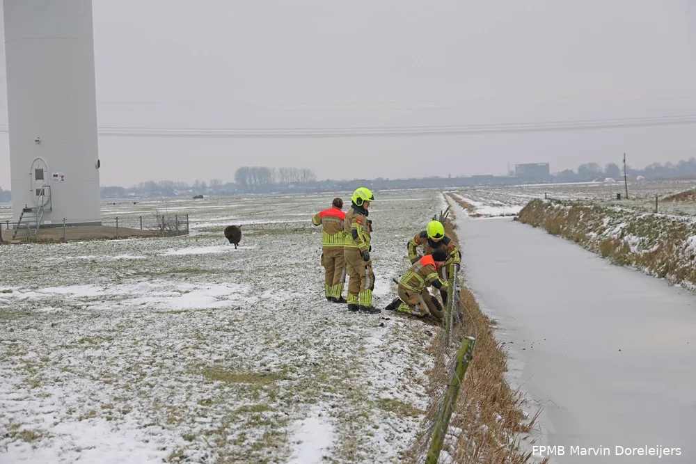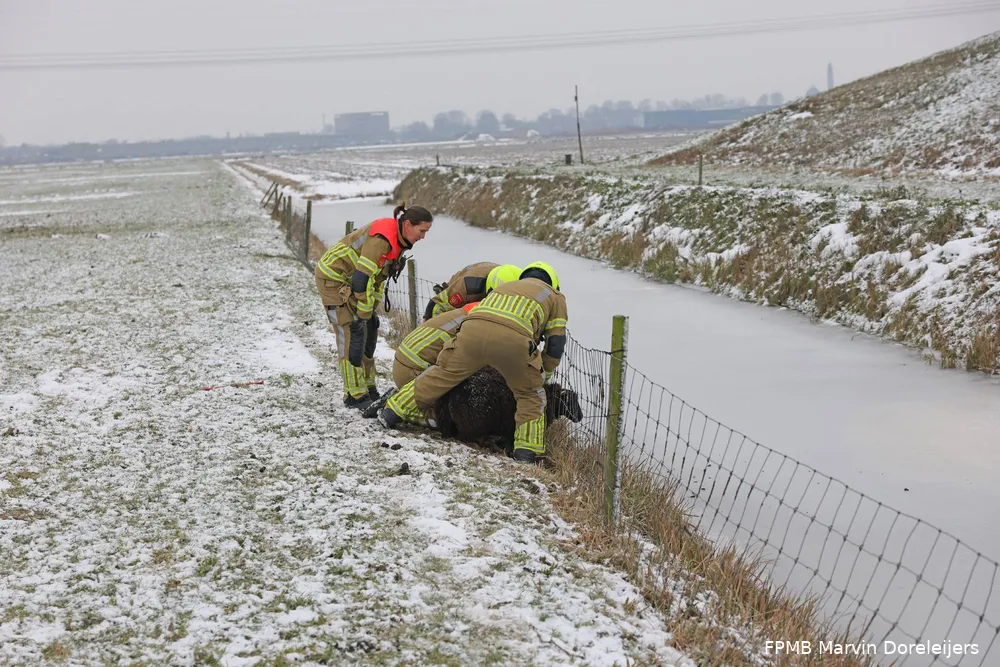 De brandweer heeft zondag een schaap uit zijn benarde positie bevrijd bij de Visbankweg tussen Waalwijk en Doeveren. Het schaap zat met zijn kop vast tussen de draden van een metalen hek en kon daardoor geen kant op. Maar het besneeuwde en gladde weiland bereiken, bleek een opgave.