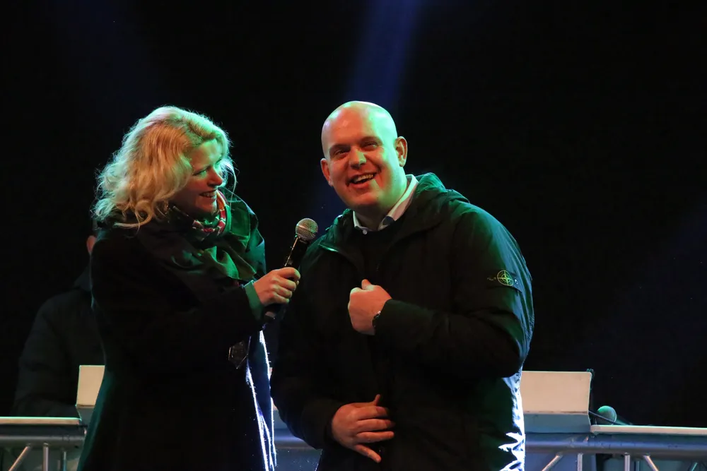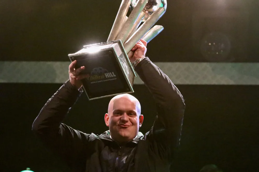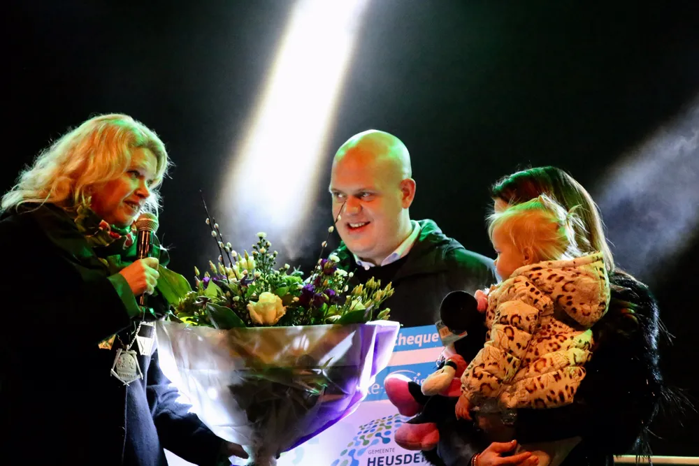 Burgemeester Willemijn van Hees reikte donderdagavond aan Michael van Gerwen tijdens zijn huldiging als wereldkampioen een cheque uit voor Stichting Make a Wish.