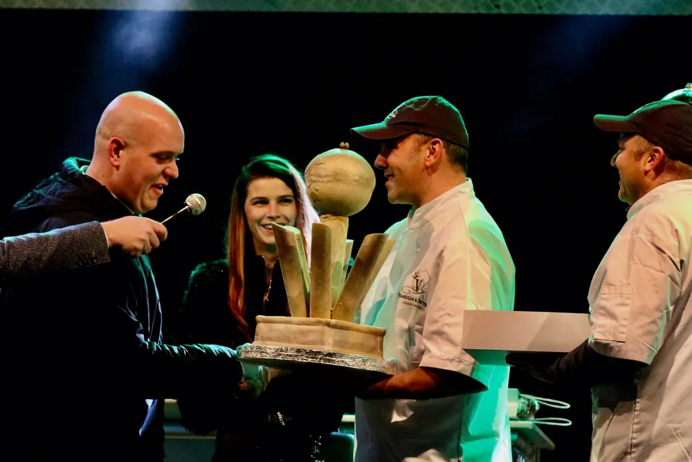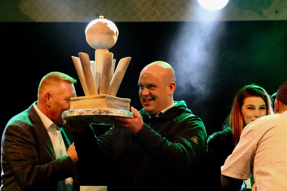 Ook kreeg Michael van Gerwen een speciale taart aangeboden van Bakker Vermeulen & Den Otter uit Vlijmen.