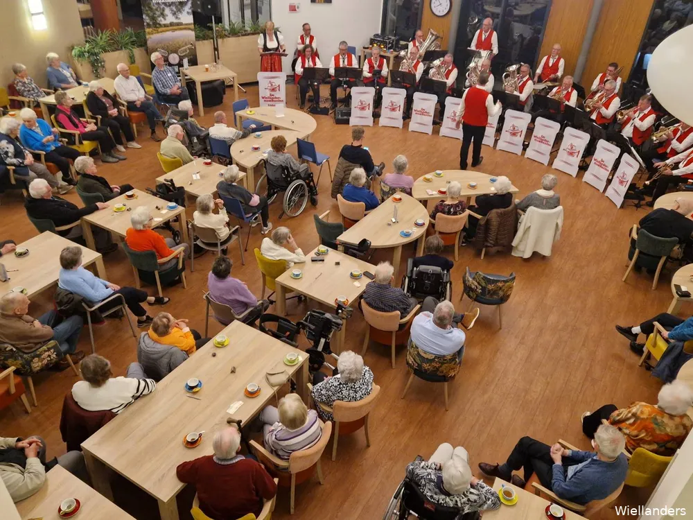 De ongeveer 20 Wiellandermuzikanten uit Elshout bestonden toen 40 jaar en werden er door de Zonnebloem twee nieuwe partituren cadeau gedaan met het verzoek de muziek dit jaar ten gehore te brengen.