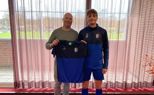 Afgelopen zaterdag was het een bijzondere dag voor RKDVC JO19-1. Het team kreeg hun nieuwe inloopshirts, gesponsord door Eaton. Het eerste shirt werd op een mooie manier uitgereikt door Fred van der Veeken, die het persoonlijk overhandigde aan z’n zoon Cas. Een moment vol trots en een glimlach voor vader én zoon.