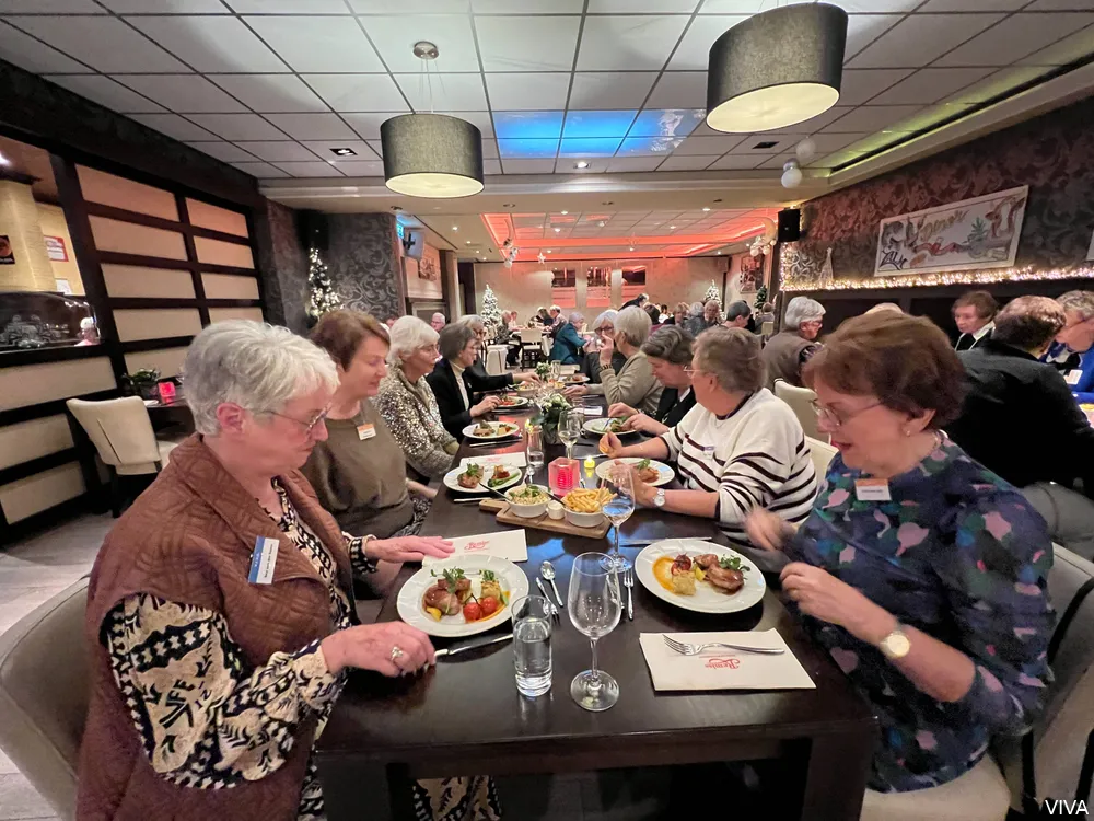 Aan mooi gedekte tafels genoten de vrouwen van kerstdiner, waarbij gesprekken moeiteloos ontstonden en gelach door de zaal klonk. Het samenzijn, het eten en de ontspannen sfeer maakten de avond compleet.