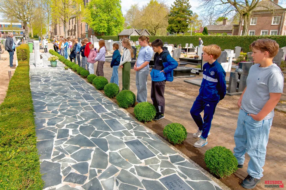 Aansluitend volgde een ingetogen bezoek aan de begraafplaats, waar de leerlingen bloemen legden bij de graven van de 28 slachtoffers van de V1-inslag. Leo van de Hoven vertelde bij ieder graf kort iets over de persoon die daar begraven ligt, waarbij met name de verhalen over jonge slachtoffers diepe indruk maakten. In volledige stilte liepen de leerlingen daarna terug naar school.