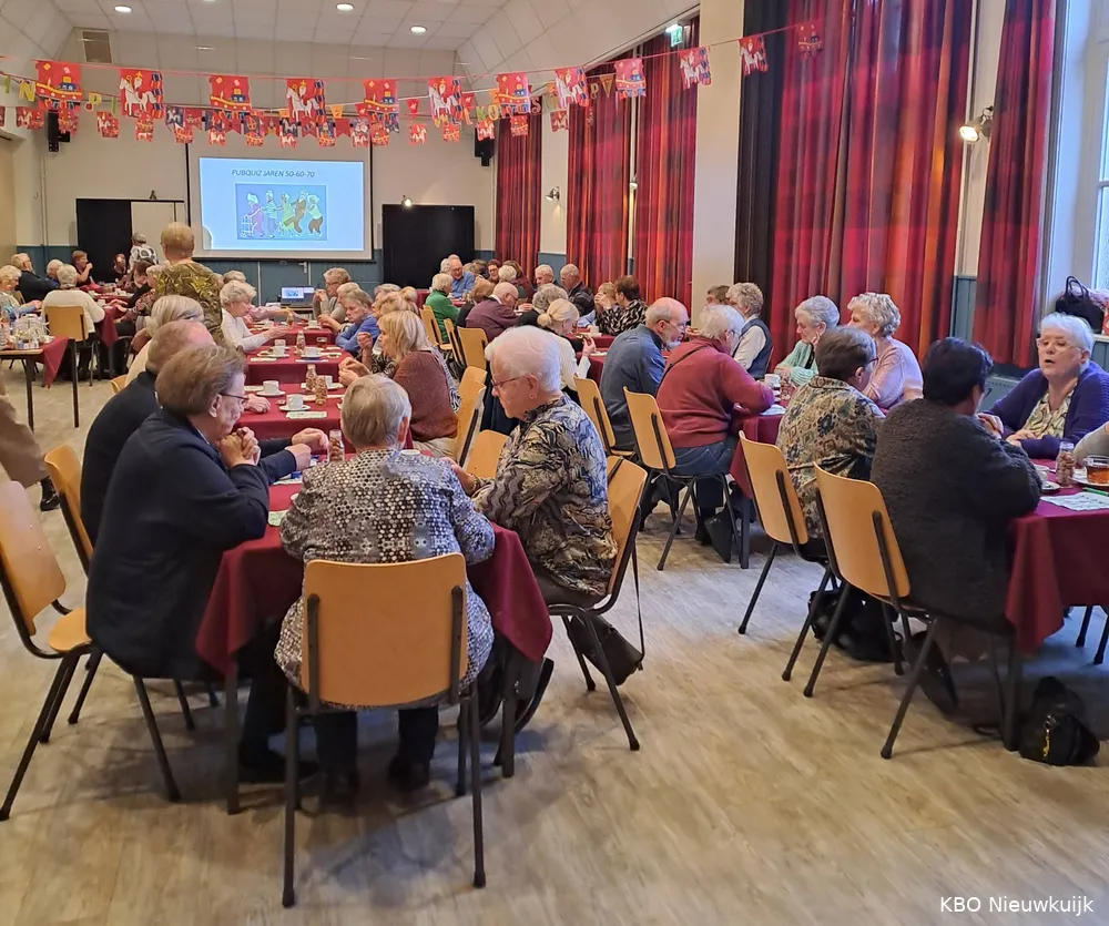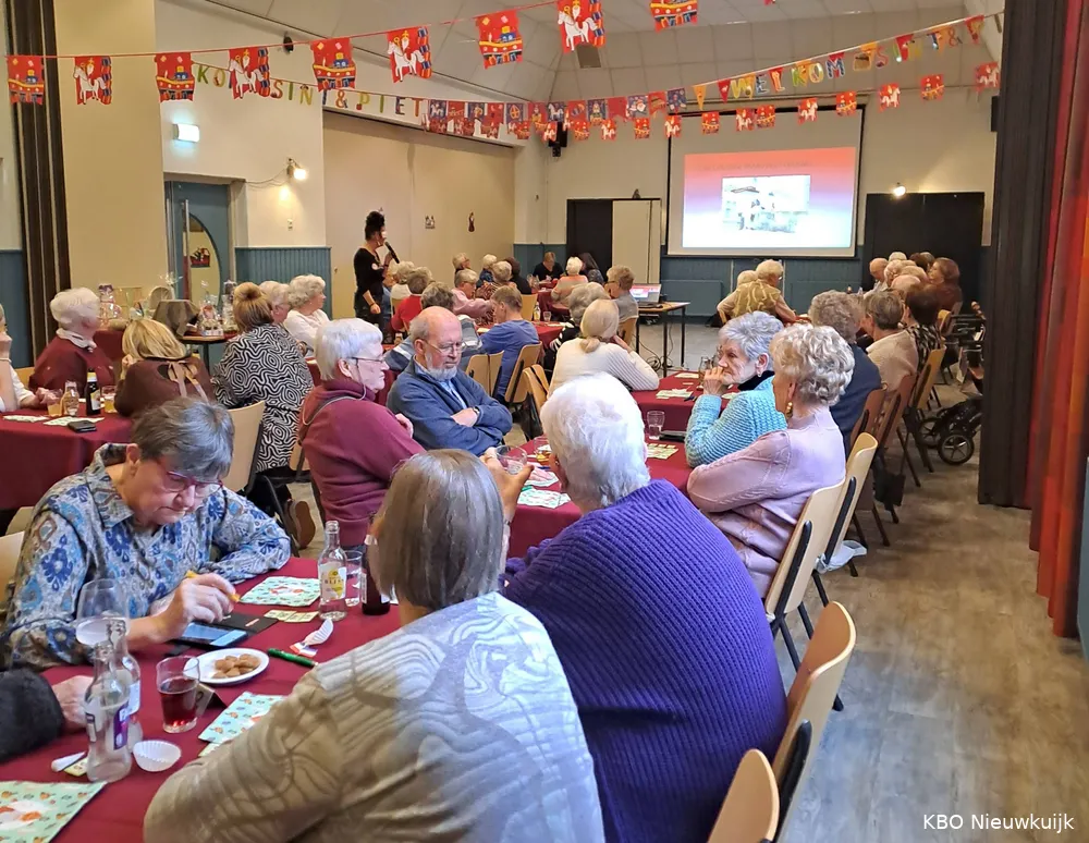 Op woensdag 3 december kwamen er zo’n 80 leden van KBO Nieuwkuijk naar het Patronaat om samen een gezellig sinterklaasmiddag bij te wonen. Dit jaar had het bestuur niet gekozen voor een traditionele sinterklaasviering. Dus niet met een fysieke Sinterklaas of een Sinterklaas bingo, maar een pub quiz over de jaren 50 tot en met 70 en natuurlijk over Sinterklaas.