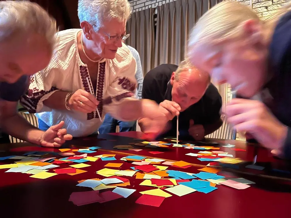 De aanwezige deelnemers werden vooraf eest in teams opgedeeld. En om elkaar beter te leren kennen moesten ze eerst hun geboortedatum prijsgeven. Daaruit bleek meteen dat de oudste deelnemer 87 was en de jongste 11. Een mooi pallet mensen om de strijd aan te gaan.