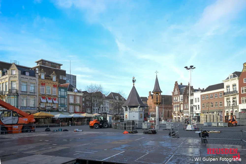 Woensdag 10 december zijn de werkzaamheden begonnen om het terrein voor het Bossche gemeentehuis in orde te maken voor Het Glazen Huis. De eerste activiteiten werden uitgevoerd door de elektro-installateurs en werden de spieren gebruikt door veertien mannen die begonnen met de opbouw van de steigers en het podium. De komende dagen tot 18 december zullen de nodige werkzaamheden worden verricht om het terrein volledig gereed te maken.