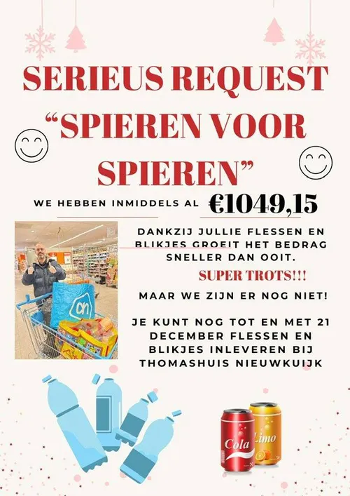 Wij, als Thomashuis Nieuwkuijk gaan tot 20 december lege flessen en