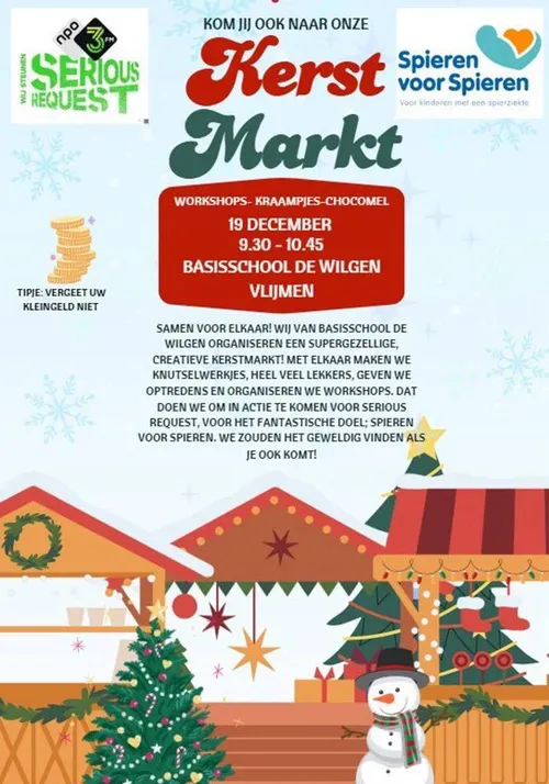 Basisschool de Wilgen organiseert een Kerstmarkt op vrijdag 19 december met workshops,