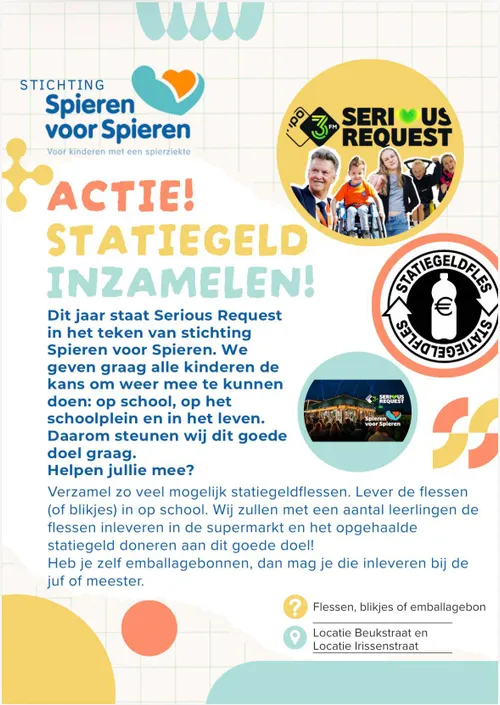 schoolplein en in het leven. De lege flessen en blikje kunnen ingeleverd worden