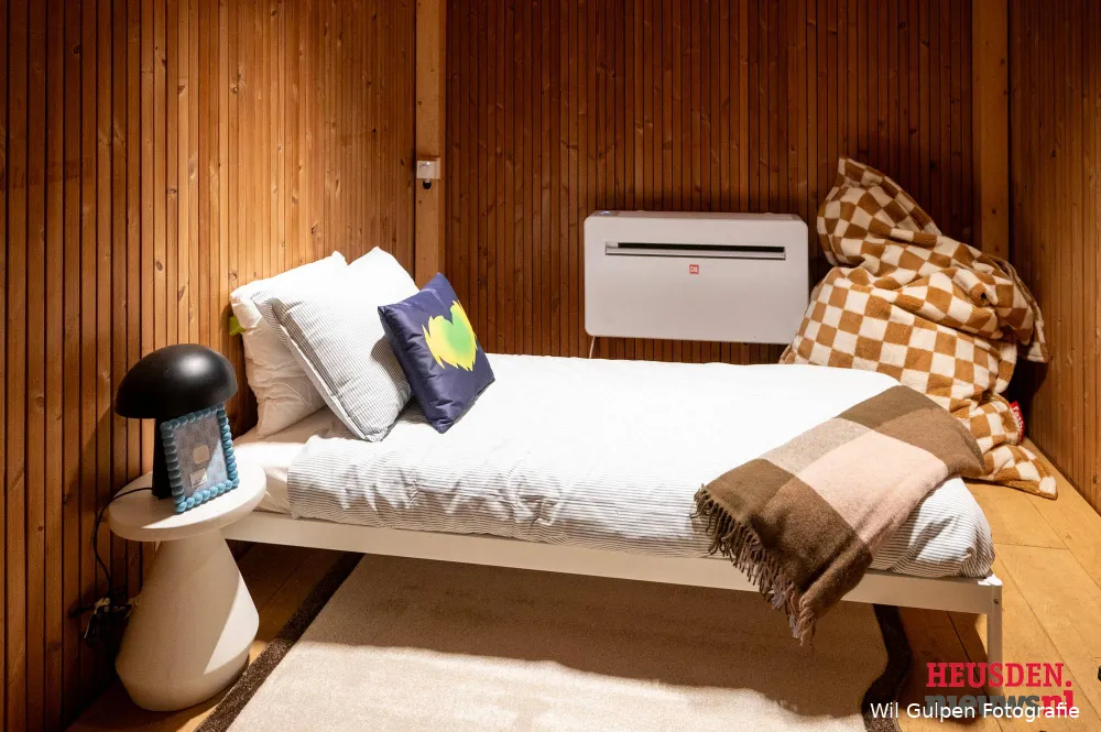 Om 12.00 uur werd de keuring van het huis met vlag en wimpel afgesloten, dus de veiligheid is in orde, kan de veiligheidscoördinator vol trots mededelen. De trots van Mart was nog groter vanwege de knusse en gezellige aankleding en de mooie locatie in het bruisende ’s-Hertogenbosch maakte voor hem alles compleet. Voor hem was ’s-Hertogenbosch geen onbekende plek, omdat hij in zijn studententijd in Tilburg regelmatig in de stad kwam. Het huis heeft een studiodeelte dat groter is dan vorige jaren, wat heel prettig aanvoelt, met een heerlijke bank waar Mart al aangaf dat hij daar zeker regelmatig even dwars op ging liggen, omdat dit makkelijk kon, ook met zijn lengte.