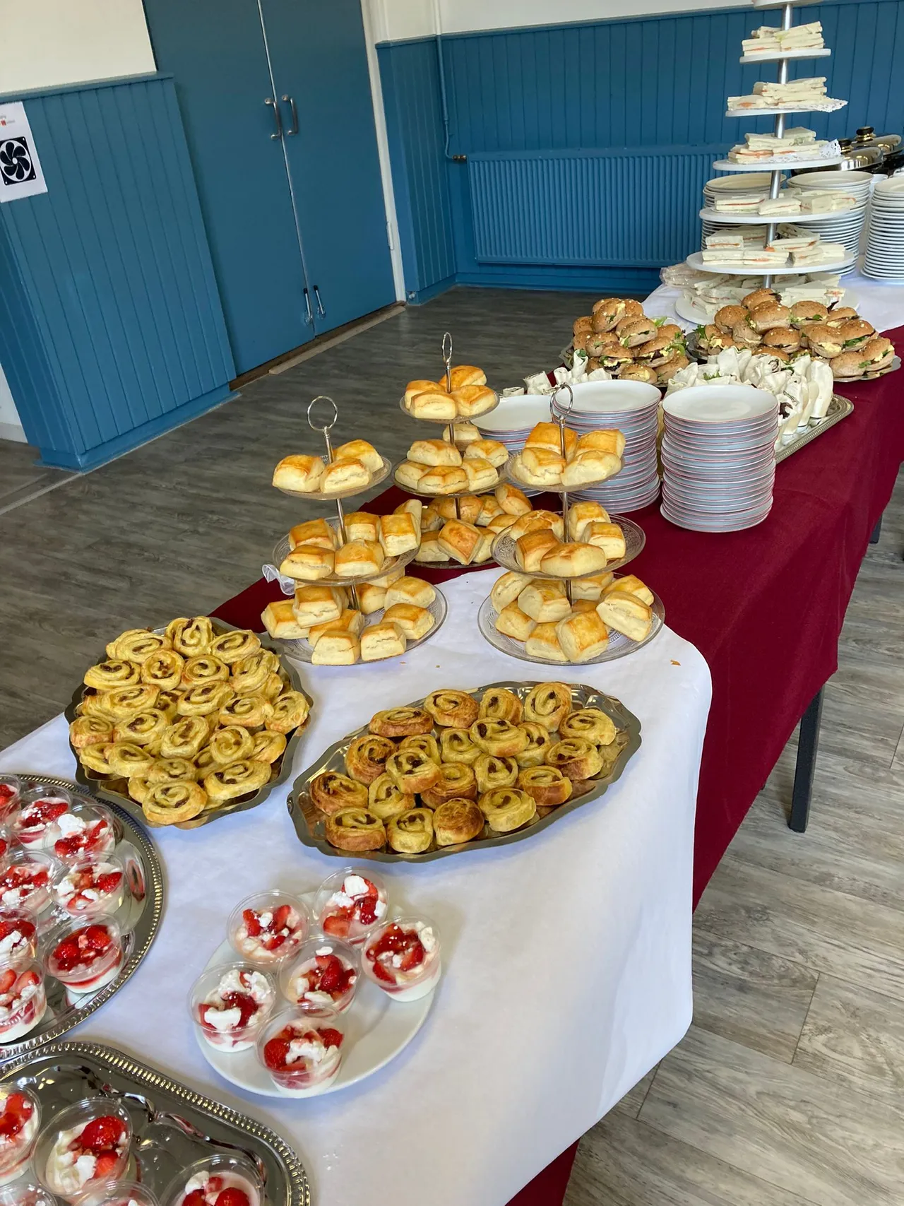 * Een mini broodje met sla eiersalade bacon, een zalm sandwich, een wrap met kruidenkaas,