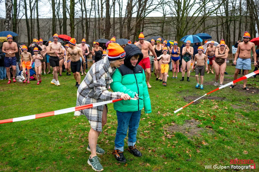 De dag begon met een opzwepende warming-up verzorgd door Ronald, die iedereen fysiek en mentaal voorbereidde op de duik. Daarna was het moment aangebroken om het nieuwe jaar echt in te starten: Luuk knipte het lint door, waarna de eerste dappere zwemmers het water in sprongen en de traditie voortzetten.