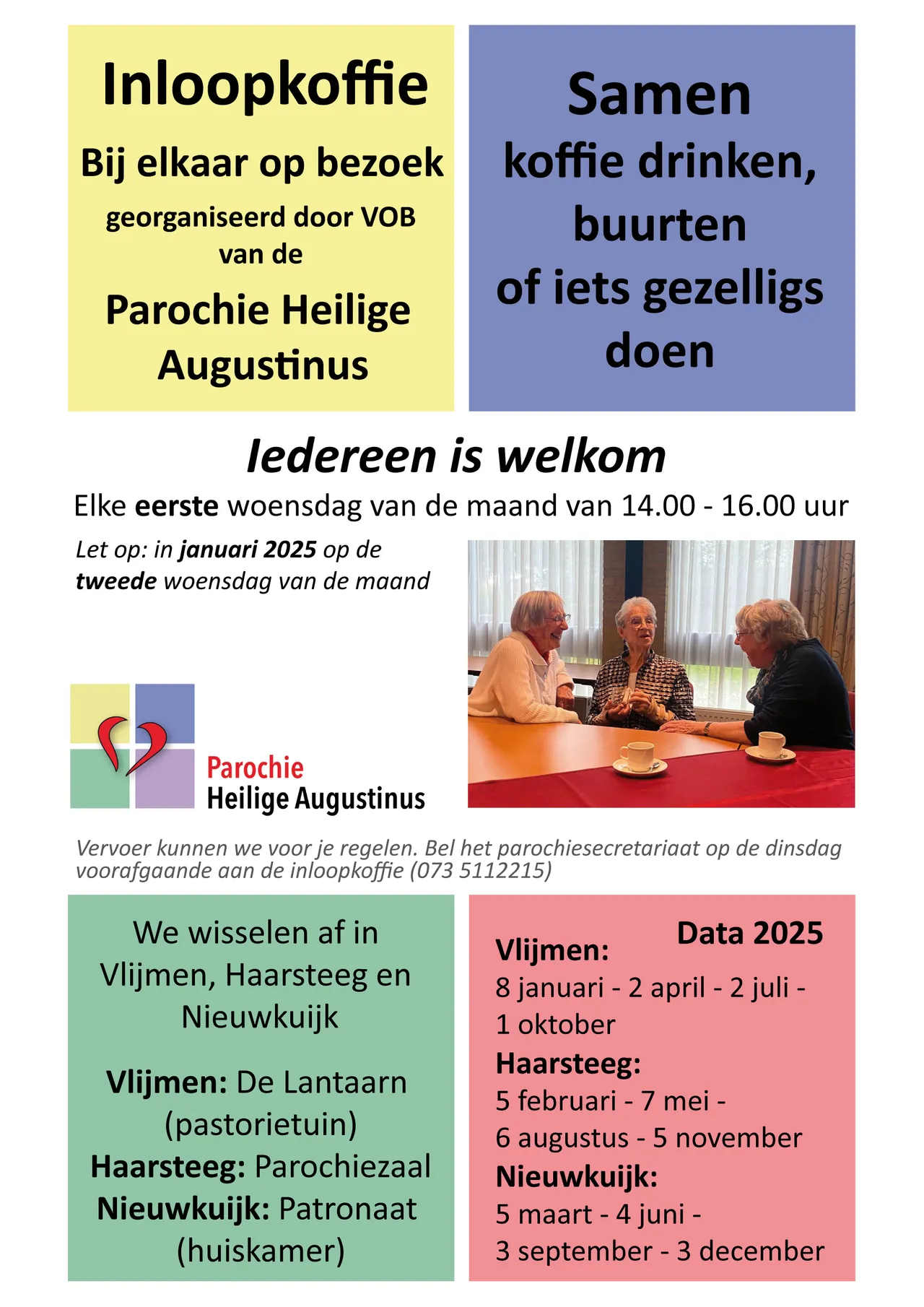 Woensdag 8 januari: 14.00 – 16.00 uur Inloopkoffie in De Lantaarn naast de kerk
