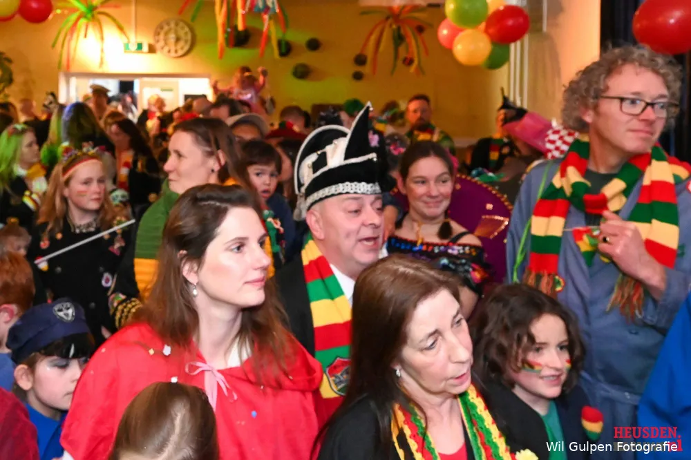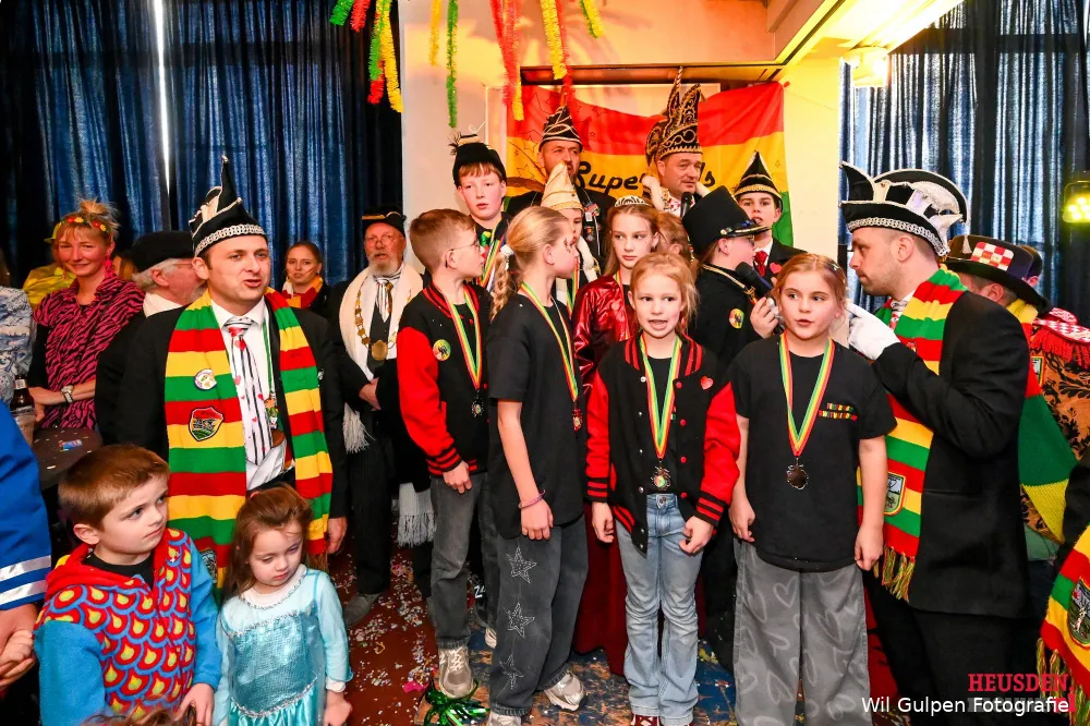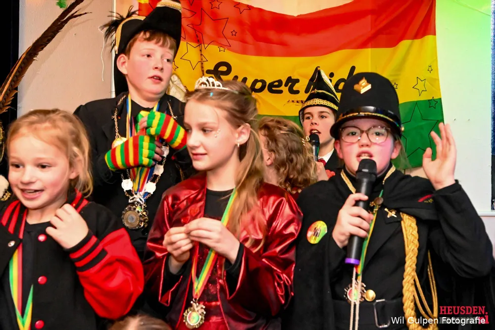 Ondertussen was in De Korf het kindercarnaval al in volle gang. In een drukke maar supergezellige zaal hadden de jeugdprins en jeugdprinses samen met de jeugdraad de sfeer er al goed in gebracht. Toen Prins Jorg en Adjudant Virgil arriveerden, konden zij met moeite de zaal betreden — zo vol en enthousiast was het.