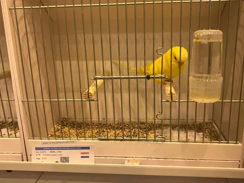 [email protected]Kleurgrasparkiet Lutino van Jos van Wezel die Brons pakte op het WK