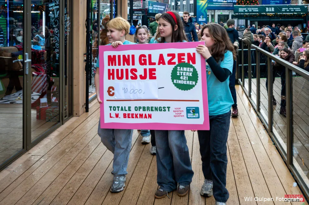 Later op de dag volgde een bijzondere actie van de L.W. Beekmanschool, die een eigen Mini Glazen Huis organiseerde. De teller liep daar op richting de € 40.000,-. De opbrengst werd die middag officieel overhandigd op de Markt in ’s-Hertogenbosch.