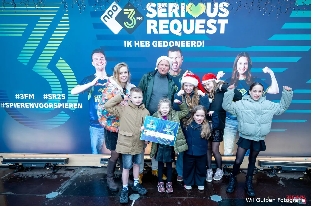 De acties rondom 3FM Serious Request blijven ook dit jaar ongekend veel steun opleveren. Scholen, families, ondernemers en verenigingen uit de regio zetten zich massaal in voor het goede doel Spieren voor Spieren, met indrukwekkende opbrengsten tot gevolg. De tussenstand op vrijdagavond 19 decmber om 20:00 uur was € 4.306.428,-- de dj’s Sophie, Barend en Mart werden helemaal overrompeld met dit gigantische resultaat al naar één dag.