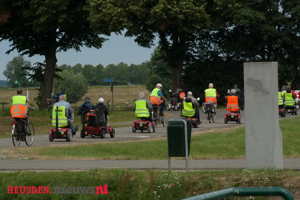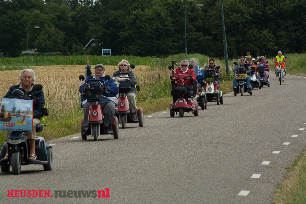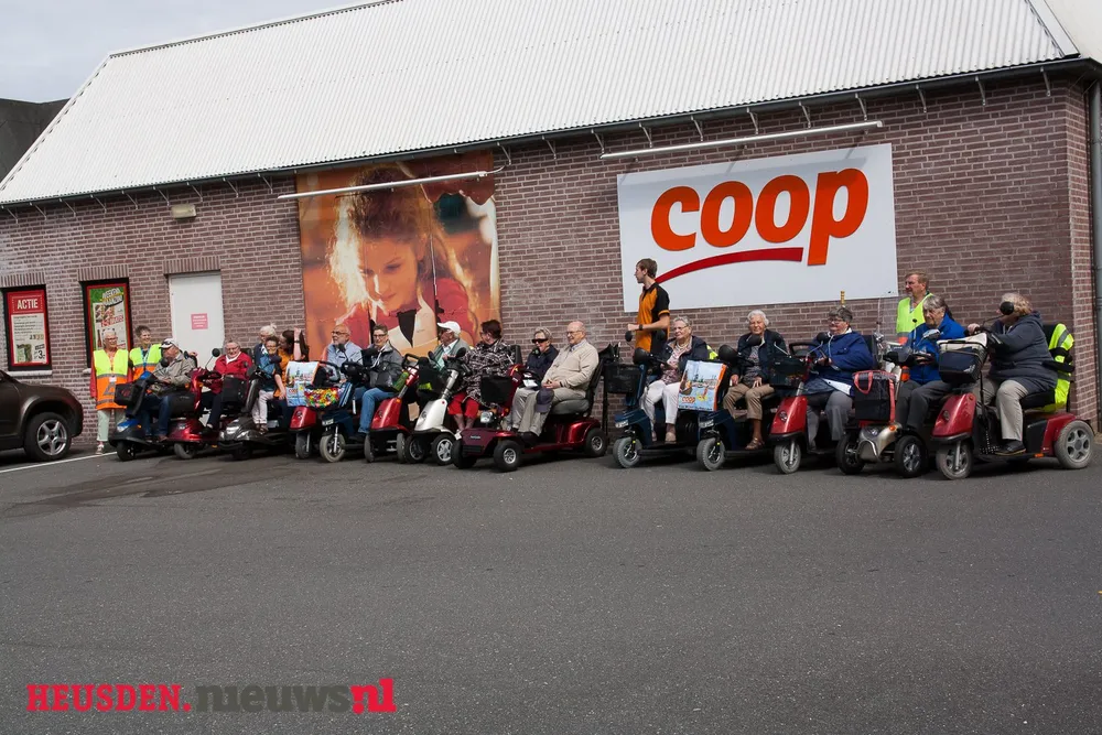 Als woordvoerder (Hans Couwenberg) van de Scootmobiel club het volgende, "extra verrast waren wij vanmorgen toen we dit jaar voor de vierde keer alweer een rit zouden gaan rijden. Als dank aan onze hoofd sponsor, De Coop Oudheusden, zouden we daar bij elkaar komen om wat foto's te maken als dank voor de bewezen diensten. Dick Buskermolen was present met zijn apparatuur, om het een en ander vast te leggen. Plots waren er ook mensen van Buurt Bestuurt, die onze hoofd vrijwilligster Mevr. Paauw, gewoon Mien dus, in het zonnetje zetten als dank voor haar werk voor de Scootmobiel club"