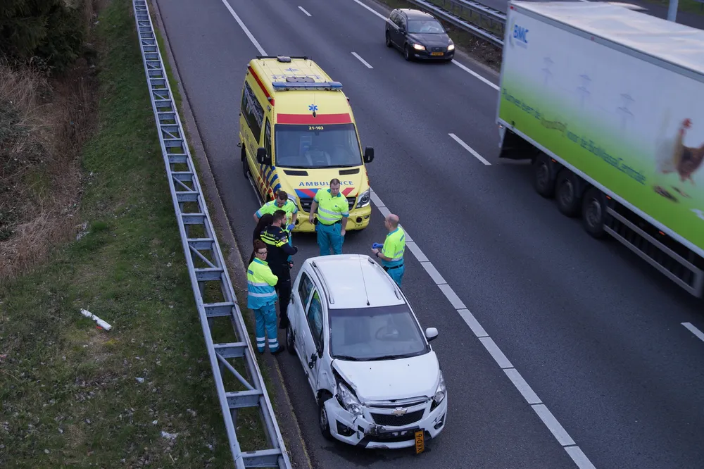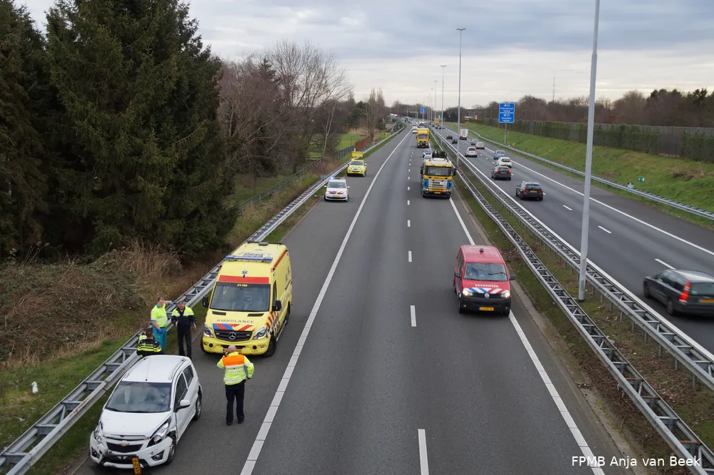 Daarbij is de auto tegen de vangrail aan gereden. De bestuurster van de auto is door het personeel van de ambulance nagekeken. Een rijstrook werd afgezet voor het verkeer met als gevolg een flinke file richting Waalwijk.