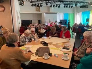 Maar nu zit het jaar erop (december valt af i.v.m. Kerstmis). Het is op een bijzondere manier uitgeluid en dat niet alleen door de gevulde speculaas, de lunch (aspergeflapje, soep, slaatje, ijsje), de muziek (de Wilki’s) en bij vertrek een chocoladelettertje. Ook was er bezoek van een achttal Oekraïners met tolk. Ze genoten van deze dag, deden mee in de polonaise en gingen zelfs achter de microfoon om een Oekraïens lied te zingen. Geweldig om dit te horen en te zien hoe deze mensen genoten. Het was een emotioneel moment.