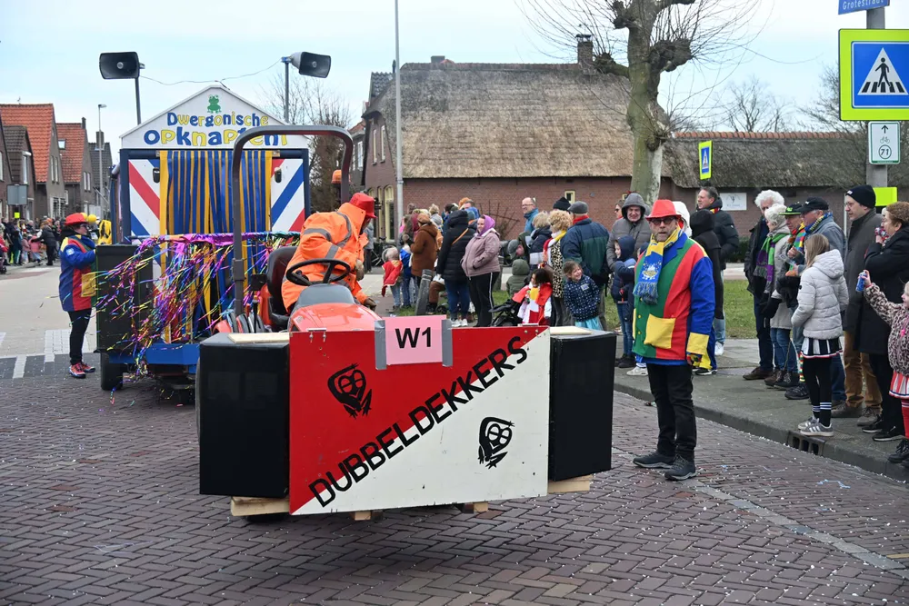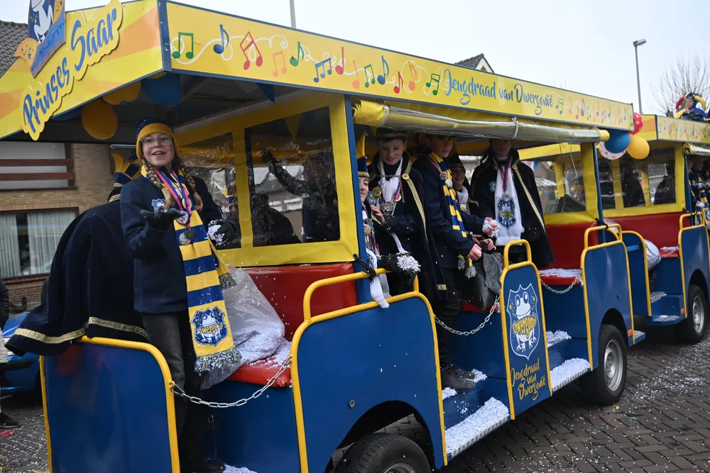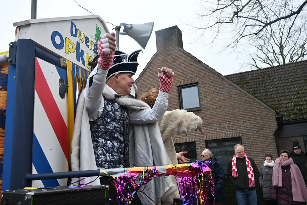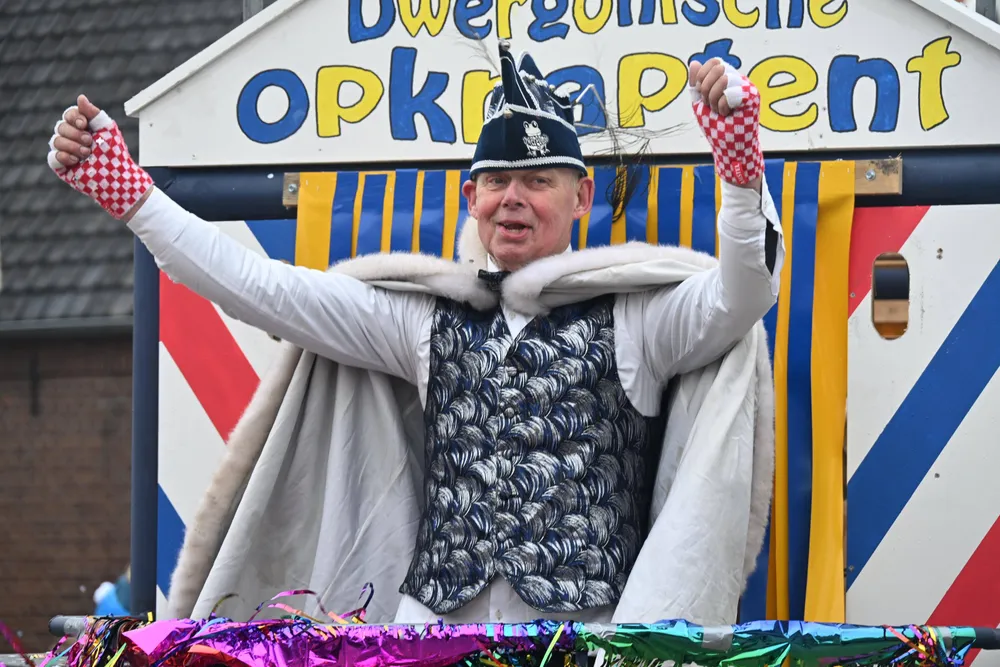 De Grote Optocht van Dwergonië vertrok zondag om 13.11 uur vanaf de rotonde bij De Remise. De bonte stoet trok via de Grotestraat, Burgemeester van der Heijdenstraat en Stationsstraat naar het Raadhuisplein voor de ontbinding. Het thema voor 2026 is "Laot oe Straolen".