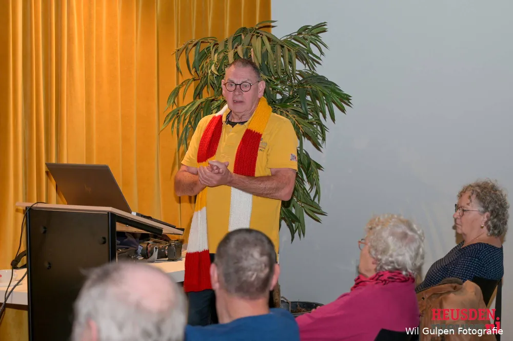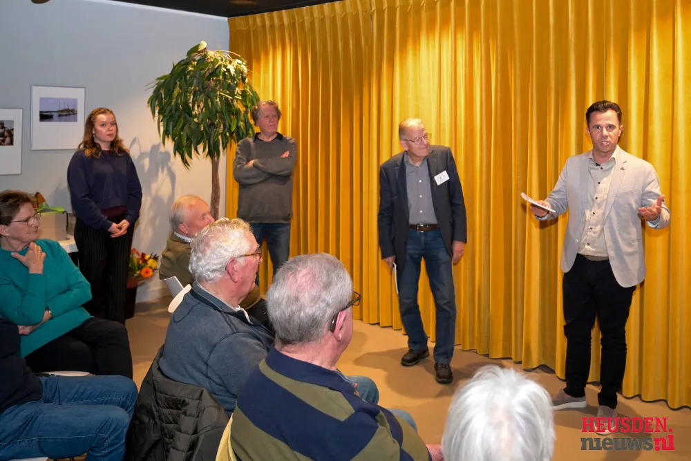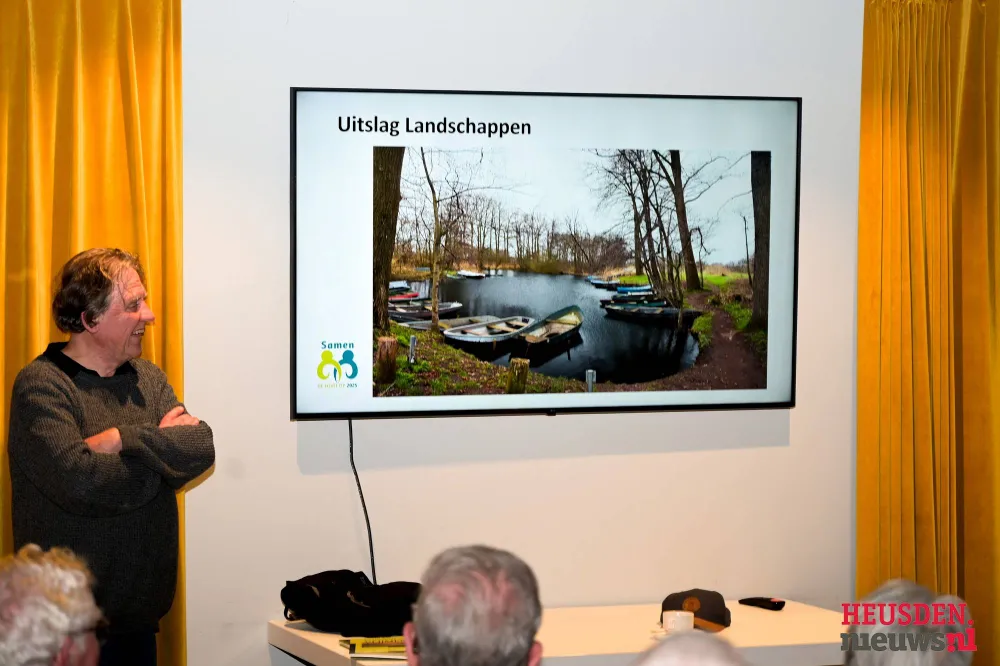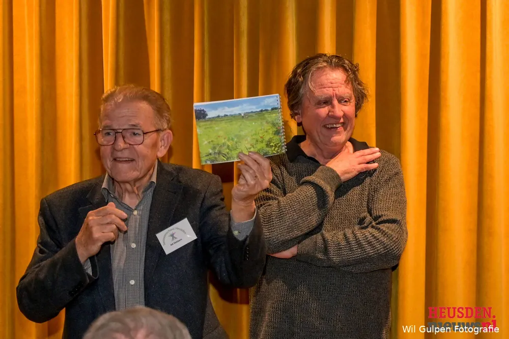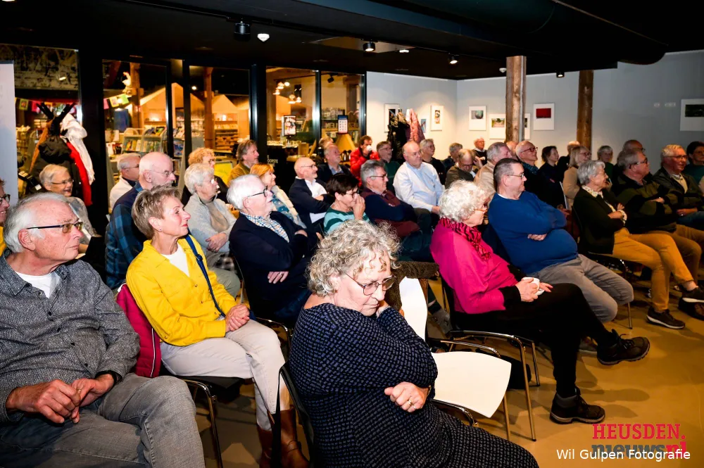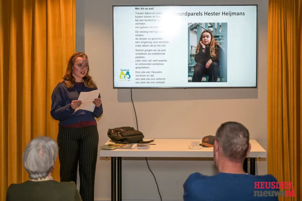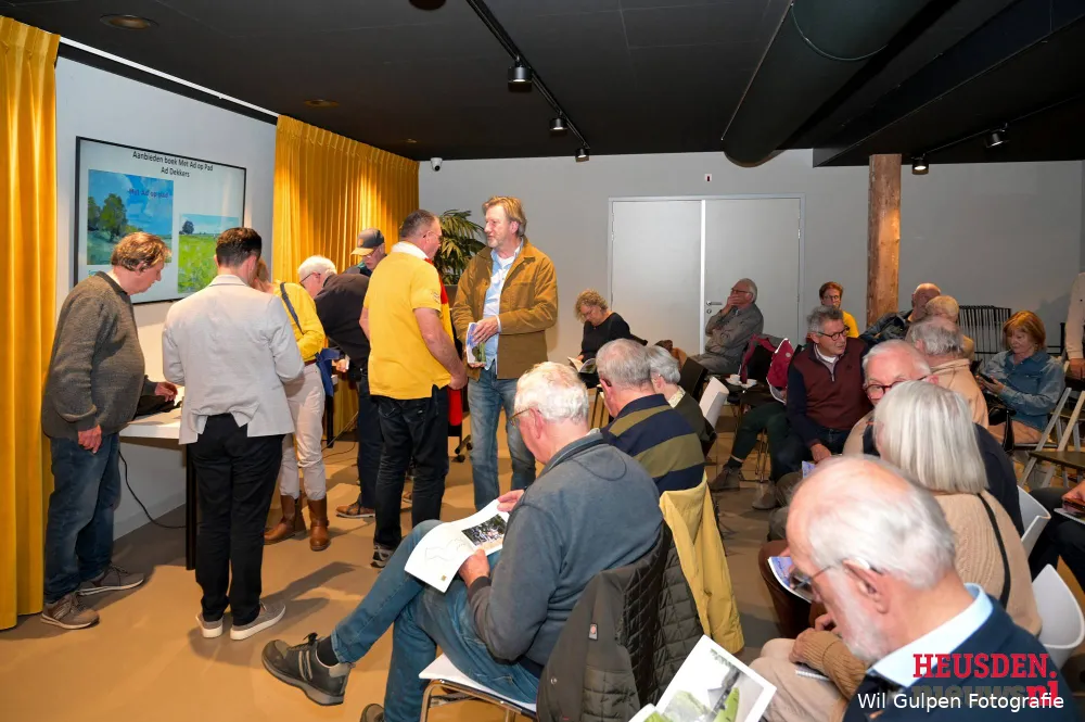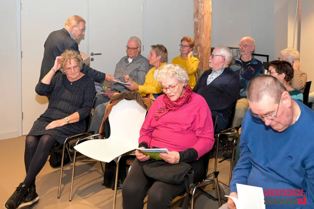 Klokslag half acht opende Ad Dekkers, voorzitter van Seniorenschool Heusden, de avond. Hij heette iedereen welkom, met name wethouder Johan Meesters en oud-burgemeester Henk Willems. In het kort vertelde hij hoe dit project tot stand gekomen was, waarna Ad Hartjes en Kees van den Oord met een PowerPointpresentatie inhoudelijk op het project ingingen. Herkenbaar waren de namen van personen die passeerden, landschappen werden herkend (soms moeilijk), archeologische vondsten kwamen ter sprake en de schilderijen van Ad van Bokhoven oogsten veel lof. Ook lof was er voor Hester Heijmans, medewerkster van bibliotheek Heusden, die een eigen gemaakt gedicht voordroeg (staat ook in het boekje).