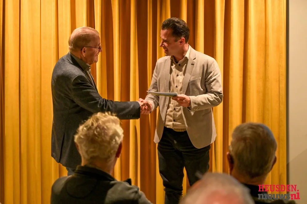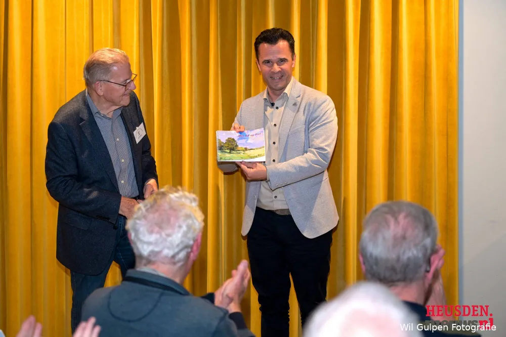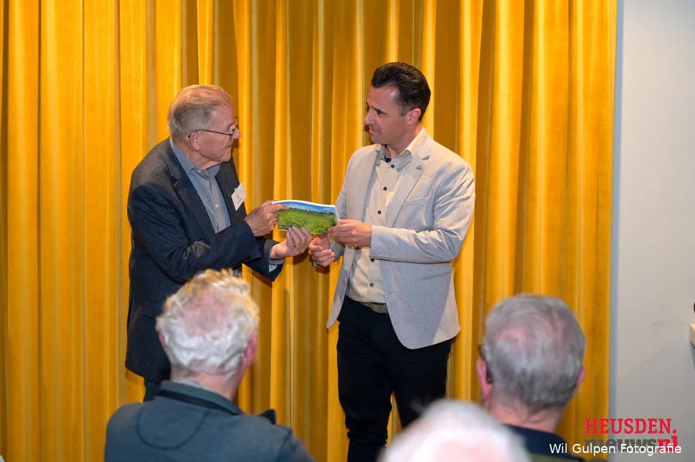 Hierna ontving de samensteller van het boekje nog een bloemetje en toen was het tijd voor de officiële overhandiging van het eerste boekje aan wethouder, Johan Meesters. Daarna nog een tweede overhandiging aan oud-burgemeester Henk Willems en werd de avond, met het uitdelen van de boekjes aan alle aanwezigen, afgesloten.