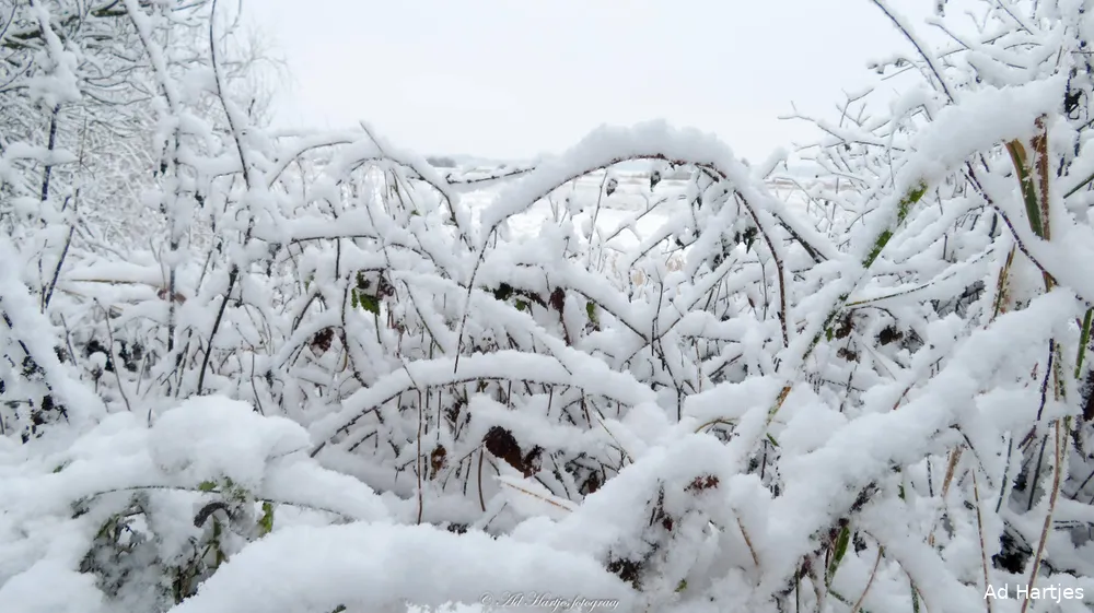 De eerste sneeuw van dit jaar levert niet alleen gladheid en geschrapte vluchten op, maar ook winterpret en mooie plaatjes. Ad Hartjes maakte foto's in de Moerputten in Vlijmen. Roland van Riel deed dat in Drunen.