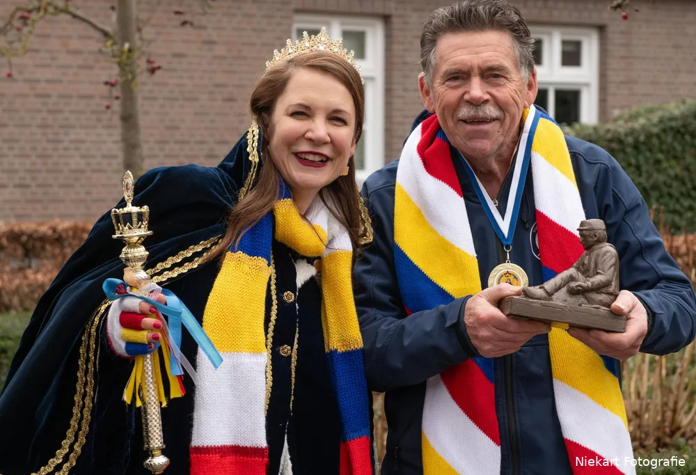 Theodoor ontving het mooie Haorendammer beeldje en een mooi bord dat in zijn tuin geplaatst wordt. Een welverdiende erkenning voor iemand die zich al decennialang met hart en ziel inzet voor het dorp. Of het nu gaat om carnaval, voetbal of het dorpsleven in het algemeen: Theodoor is altijd bereid om zijn steentje bij te dragen.