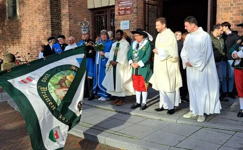 waar de mis plaats vond, na de mis vond voor de kerk een vendel groet plaats