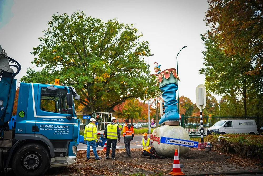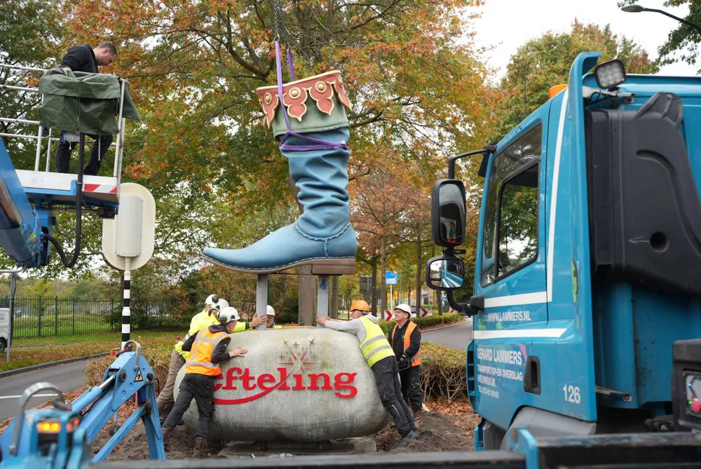 plek gezet. Vervolgens werd Klein Duimpje met een hoogwerker bovenop de laars